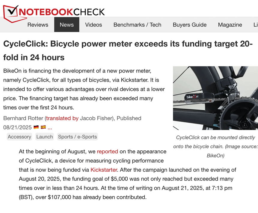 CycleClick is gaining attention across cycling and tech media worldwide. In this section, we highlight articles, reviews, and features that explore our innovation, mission, and performance on the road